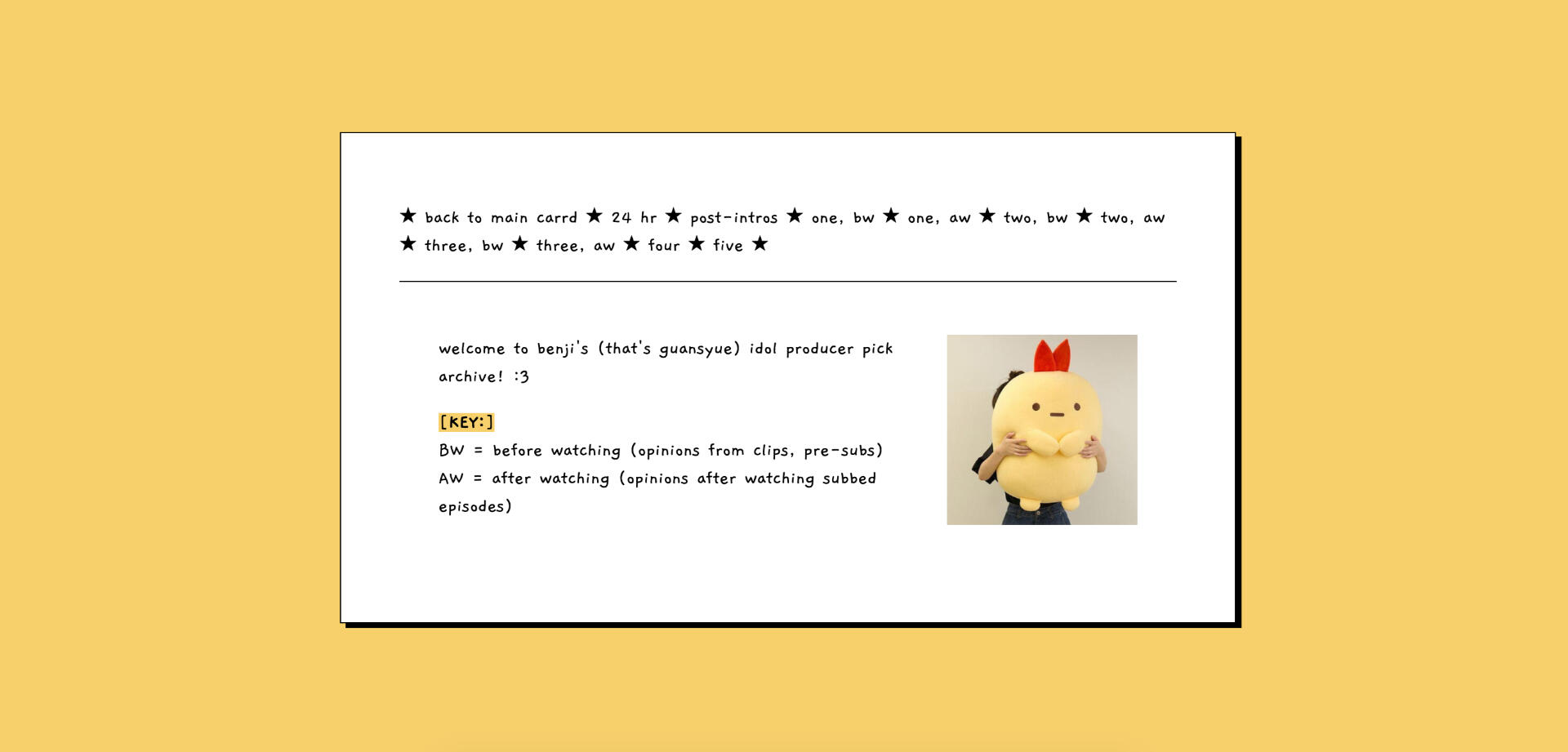 welcome to the other section! these are (most of) the other carrds i've made :)
